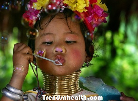 The Karen tribe of Thailand follows a bizarre tradition of wearing rings on their neck to get a large neck. They believe the large neck is a symbol of beauty and elegance and add to their attractiveness. The girls start wearing the rings around the neck at the age of 5 to get large necks and enhance their beauty. The rings are added over time to time to keep the neck getting larger.