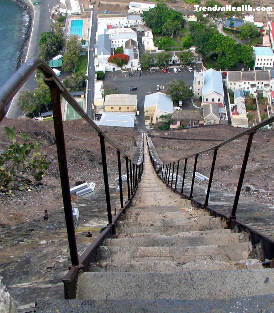 Jamestown of the island, Saint Helena has a ladder/stairway of 699 steps from the floor of the valley to the top of Ladder hill. The steep stairway is very dangerous as one need to be fit to climb these 699 steps of so steep stairway.